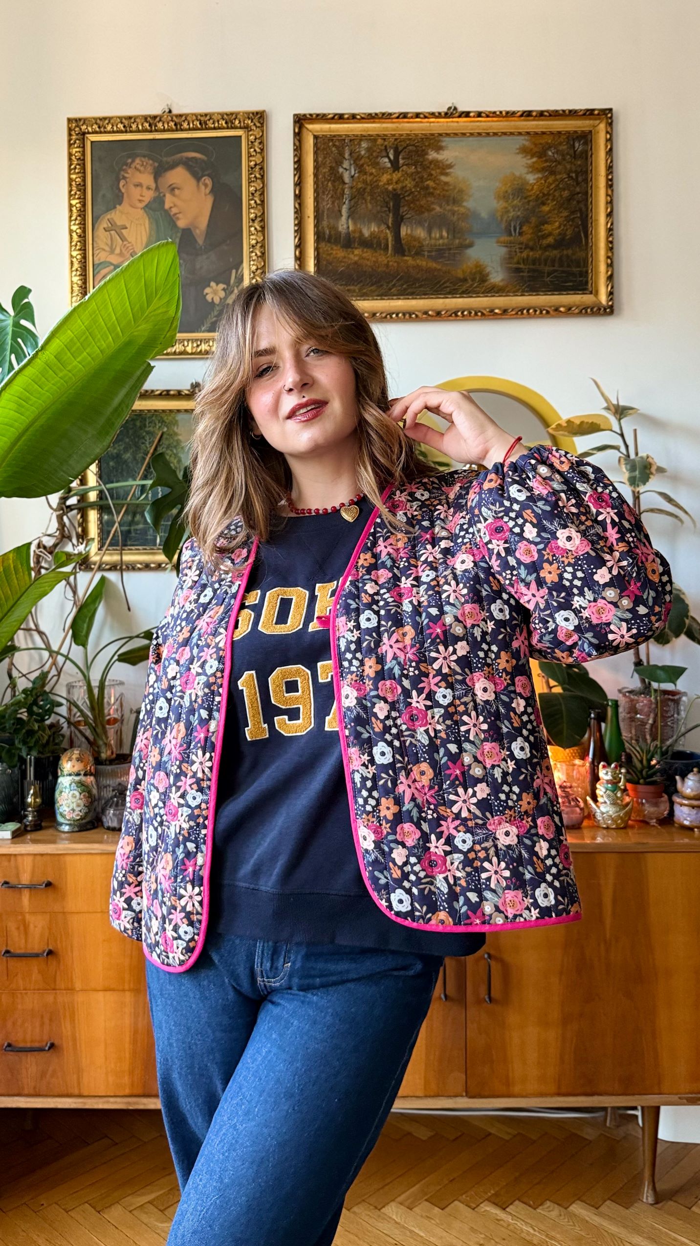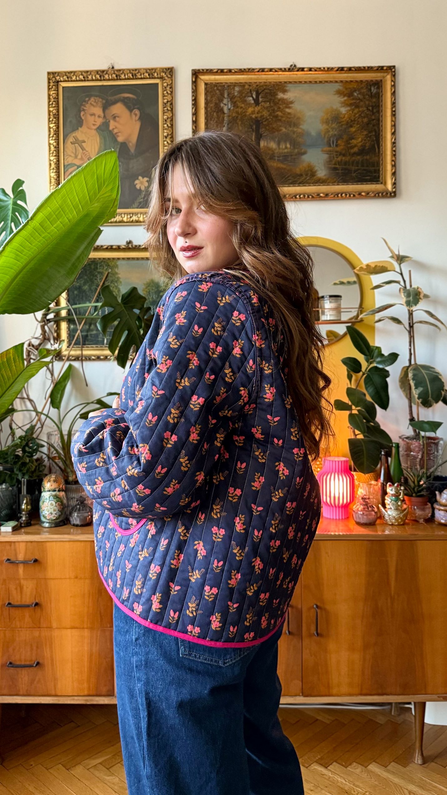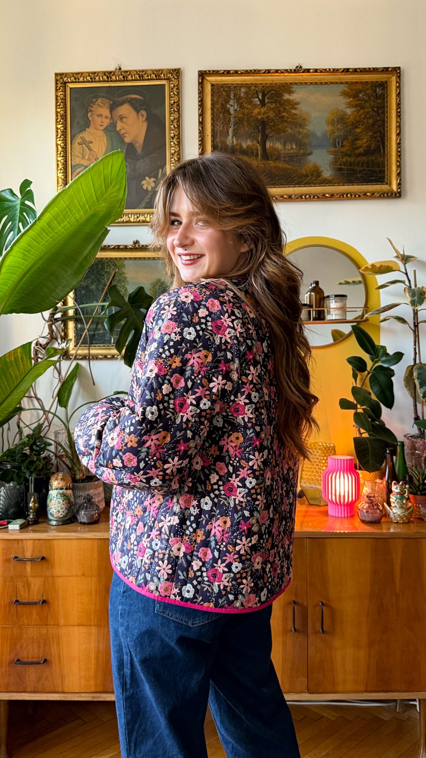 Lekka dwustronna kurtka- idealna jako kurtka przejściowa, wykonana z kolorowej pikówki we wzory.