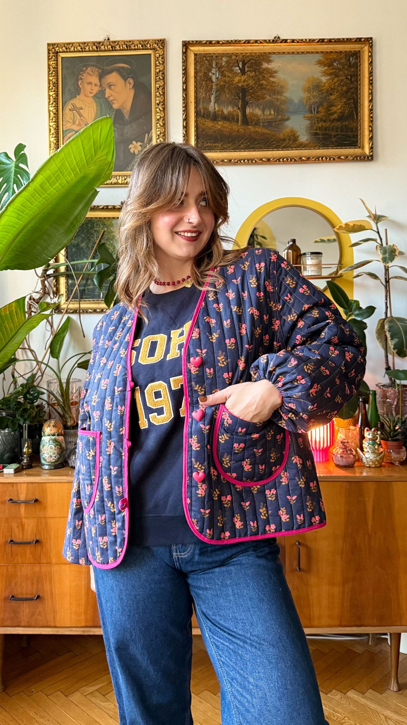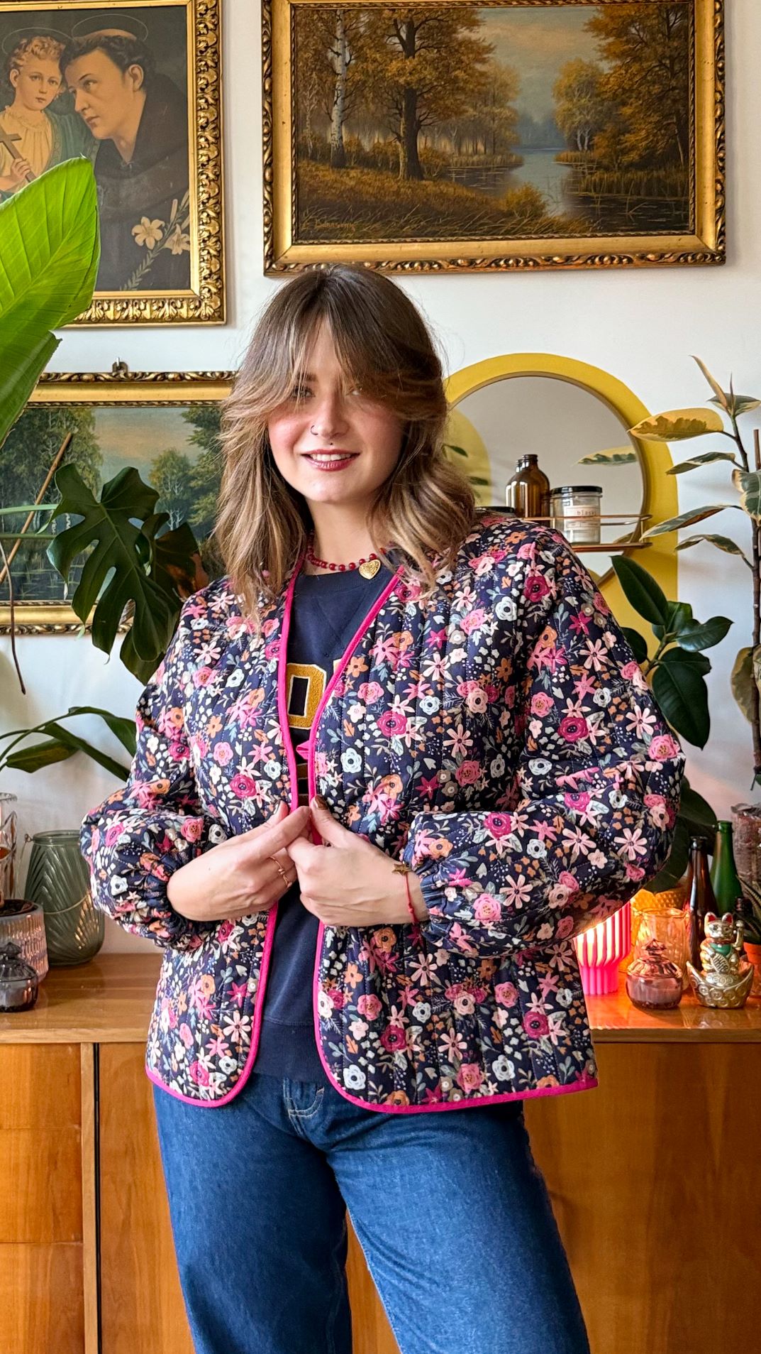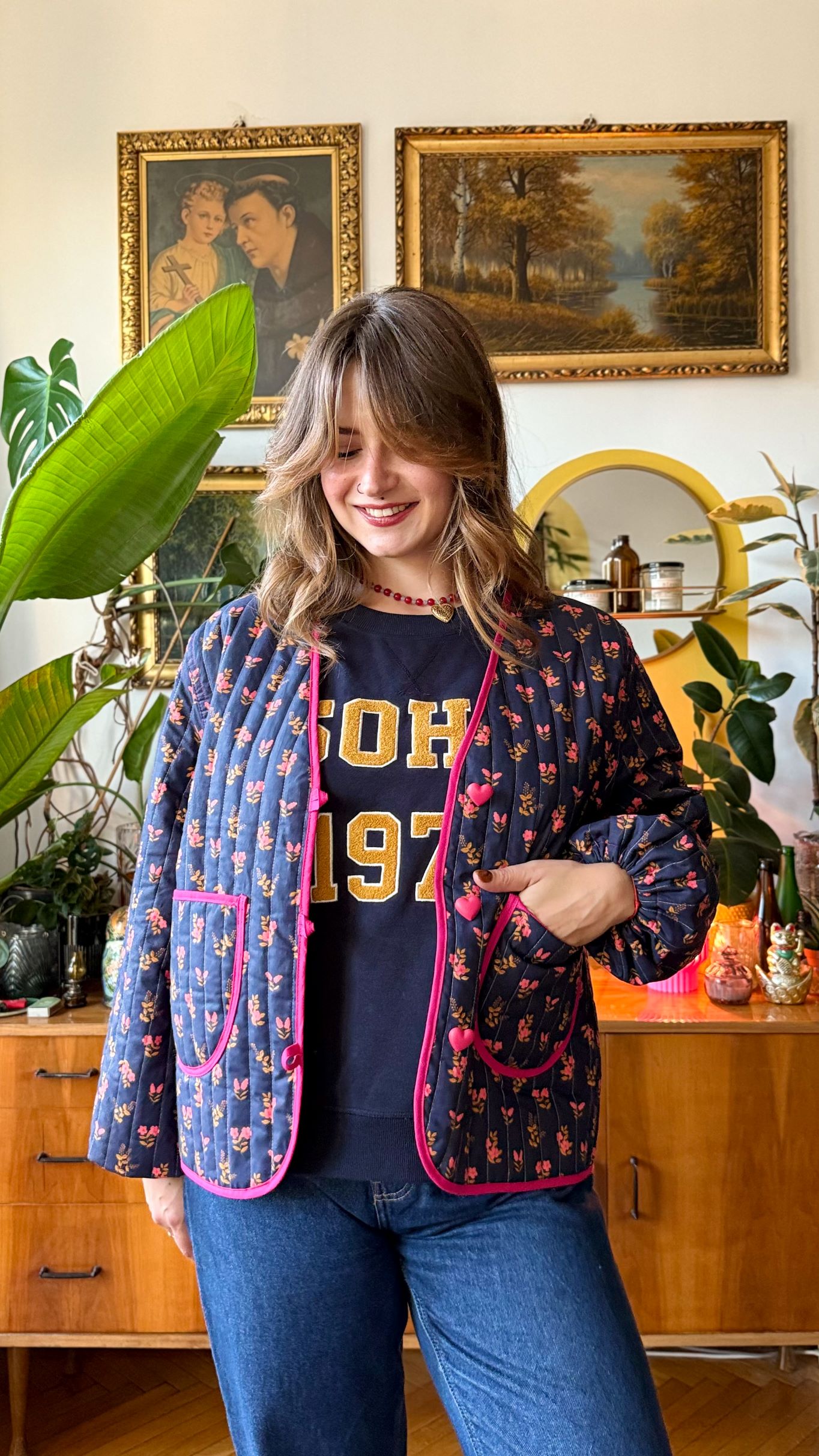 Lekka dwustronna kurtka- idealna jako kurtka przejściowa, wykonana z kolorowej pikówki we wzory.