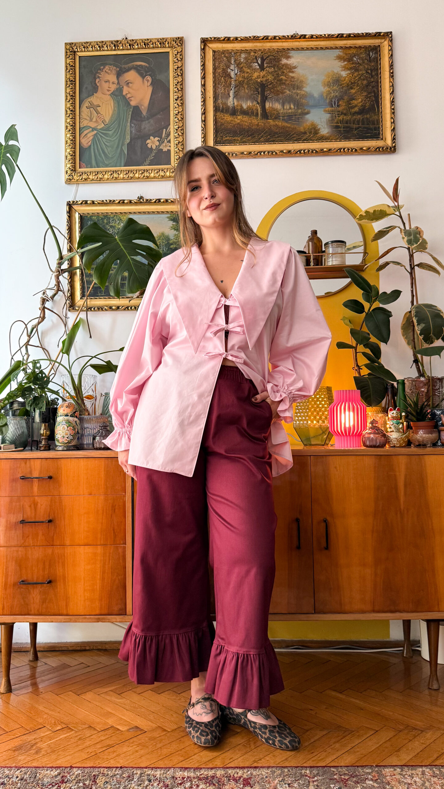 Długość ok 90cm, ale dzięki temu, że każde zamówienie szyję na bieżąco, to jestem ją w stanie dopasować do Twojego wzrostu-tylko daj mi znać w notatce do zamówienia 🙂